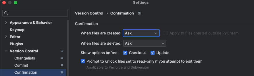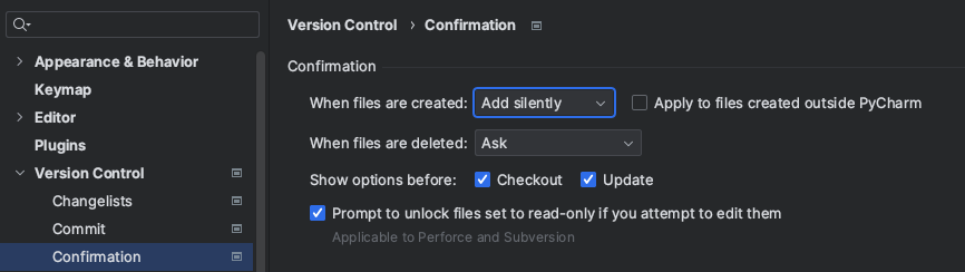 setting -> version control -> confirmation 부분에서 option을 설정하면
