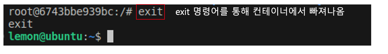 exit 명령어를 통해 컨테이너에서 다시 호스트로 돌아올 수 있다!