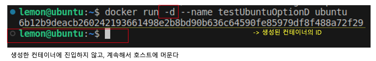 $ docker run -d --name testUbuntuOptionD ubuntu