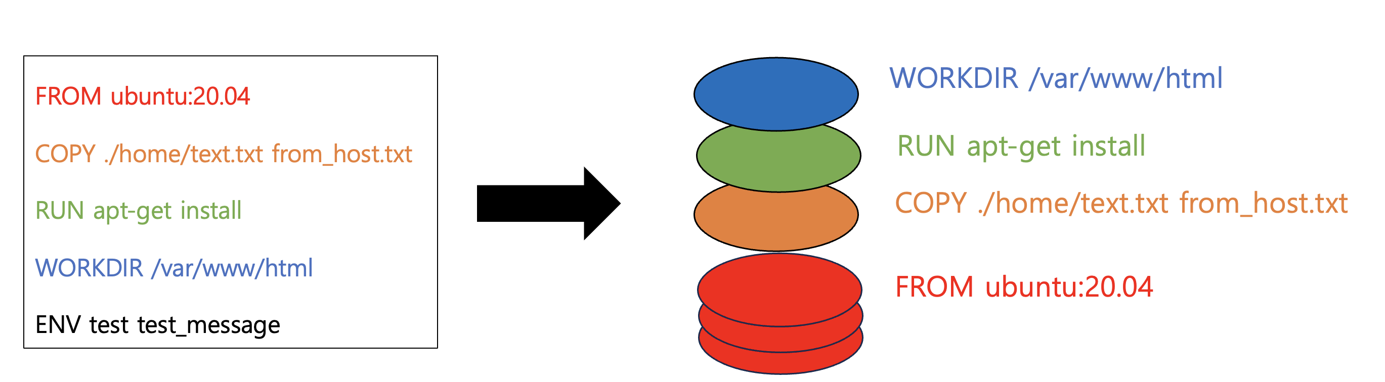 - 각 줄이 명령들로 이루어져 있으며, build 시 각 줄이 순서대로 실행됨