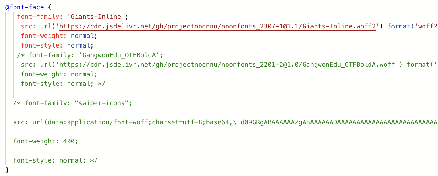 6. font-family 자리에 1번에서 복사한 코드 붙여넣기