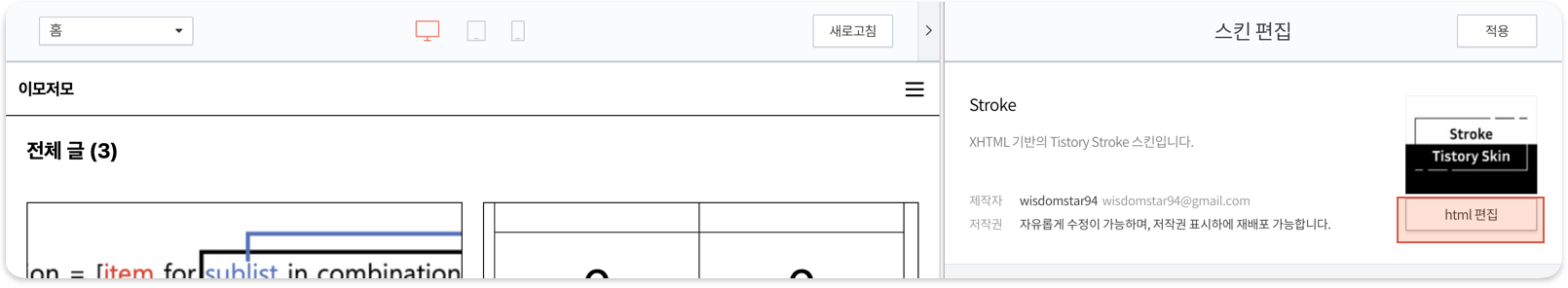 3. 사용중인 스킨 편집 클릭