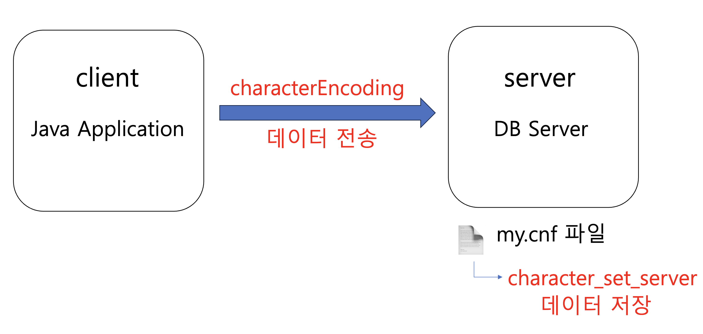 클라이언트인 Java 어플리케이션 -> DB 서버로 전송할 때의 데이터 인코딩 방식을 의미하고