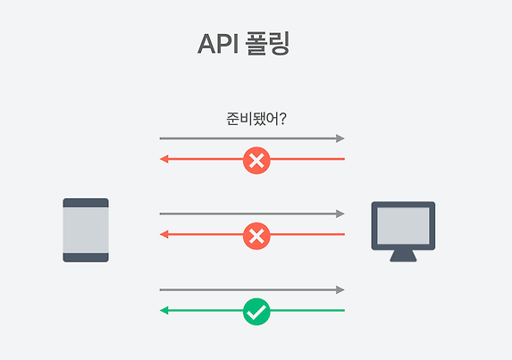 : 서버에 이벤트가 발생했는지 클라이언트가 주기적으로 요청하여 알아냄 (클라이언트 측에서 호출 가능)