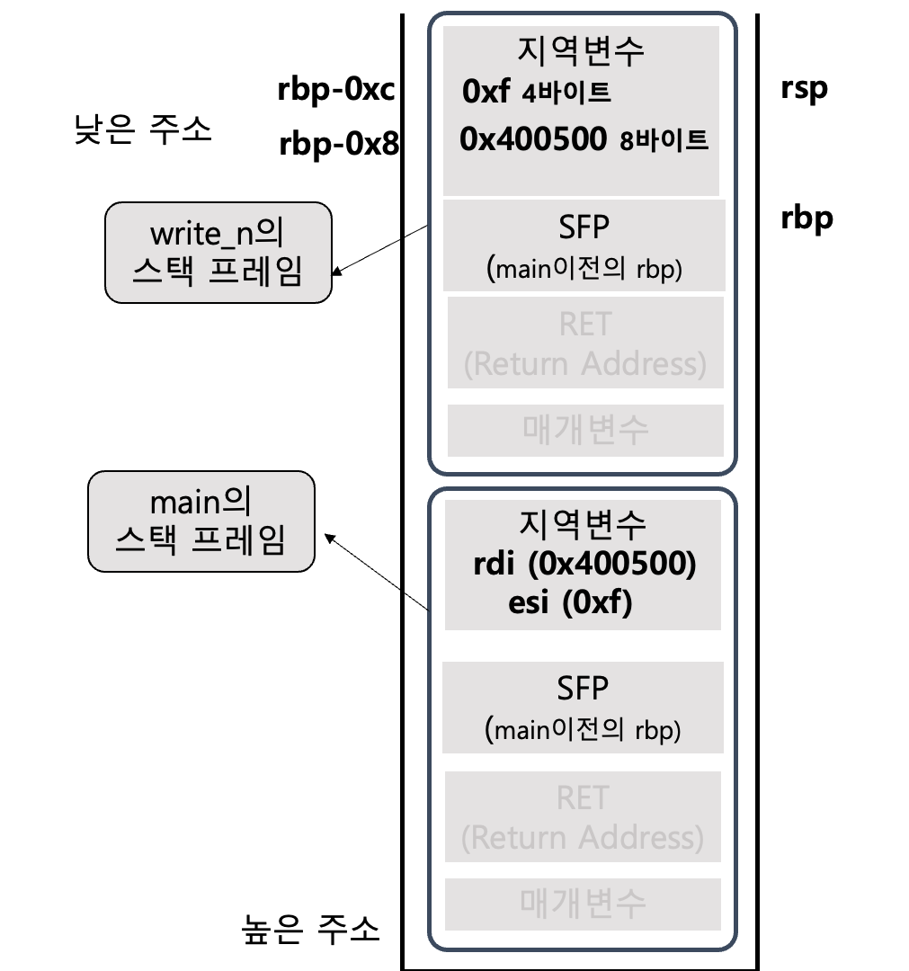 > 0x400497 위치에 있는 <write_n> 함수 call
