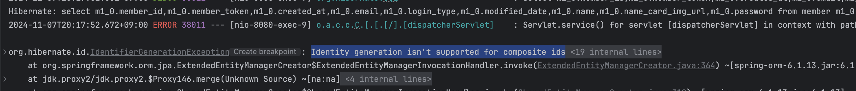 Identity Generation이 복합키를 지원하지 않는다!